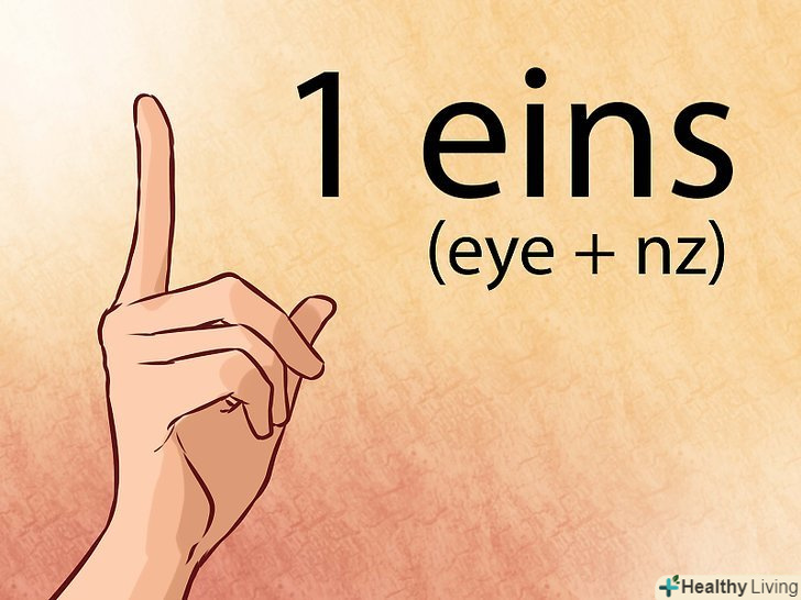 Почніть рахунок від 1 до 10 по-німецьки, сказавши слово "eins" (один). вимовляється як"айнц". Тепер, коли ви знаєте вимови деяких ключових приголосних і голосних, порахувати до 10 по-німецьки буде досить просто.