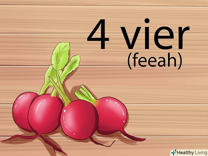 Навчіться вимовляти німецькі приголосні.одне з ключових відмінностей німецької та англійської вимови-це звучання деяких приголосних. Деякі вимовляються так само, як і в англійській мові, але далеко не всі.- Згодна " v "звучить як" f " (ф). Так що, відтворюйте звук " f "(ф), а не" v", коли говорите по-німецьки чотири.[4]
