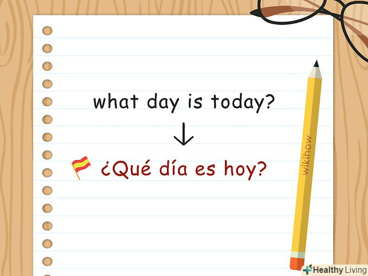 Запитайте дату іспанською мовою. питання: ¿Cuál es la fecha de hoy? використовується, коли необхідно дізнатися сьогоднішню дату. Наприклад, якщо ви пишете історію іспанською мовою, вашому персонажу може знадобитися дізнатися дату.[15]- Ви також можете запитати:¿Qué día es hoy? як правило, це питання використовується, щоб уточнити: який сьогодні день?, якщо вам потрібно дізнатися день тижня. У деяких випадках його задають, щоб дізнатися дату (так само, як і в російській мові).