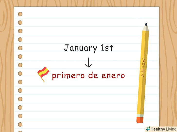 Напишітьprimero , щоб позначити перший день місяця.як правило, щоб повністю розписати дату іспанською мовою, досить вказати день цифрою. Виняток становить перший день місяця, для якого зазвичай використовується слово primero (тобто, перше) .[6]- Наприклад,1 січня — primero de enero.