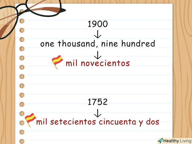 - Ставте десятки і одиниці після тисяч і сотень. Наприклад, рік1752 по-іспанськи можна написати так: mil setecientos cincuenta y dos.