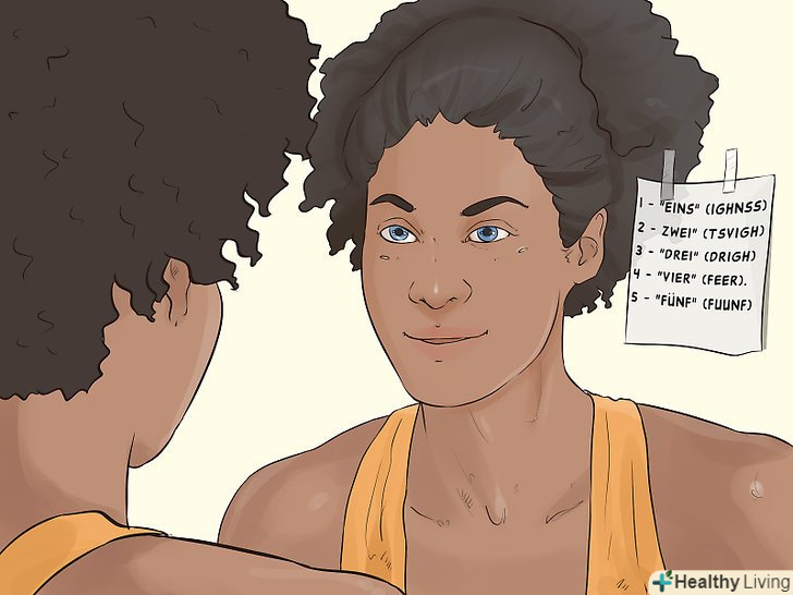 Отже, кілька разів порахуйте до п'яти.найкращий спосіб навчитися рахувати-перераховувати від одного до п'яти знову і знову, поки це не буде відскакувати від зубів. Наприклад, якщо вам потрібно щось порахувати в повсякденному житті, вважайте німецькою, а не російською.[5][6]- Можна написати слова на стікерах і наклеїти стікери на дзеркало або на двері (кудись, куди ви постійно дивитеся). Це допоможе запам'ятати слова.