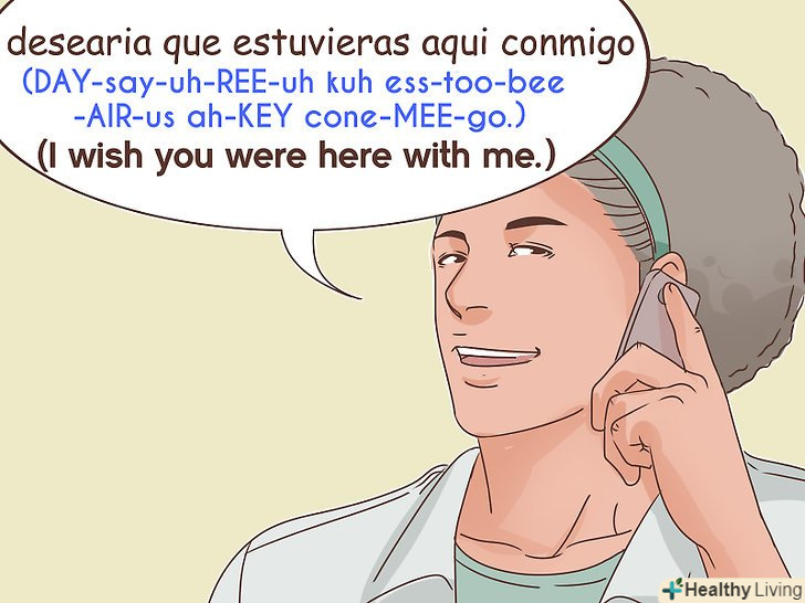 Скажіть людині, що вам хотілося б бачити його поруч з собою.коли ви по комусь сумуєте, ТО хочете, щоб людина була поруч, а не десь далеко. Це особливо характерно для романтичних відносин, в яких можна використовувати фразу "desería que estuvieras aquí conmigo" ("я хотіла/хотів би, щоб ти був/була поруч").[19]- "Desería "- одна з форм іспанського дієслова" desear", який означає"бажати".[20]
