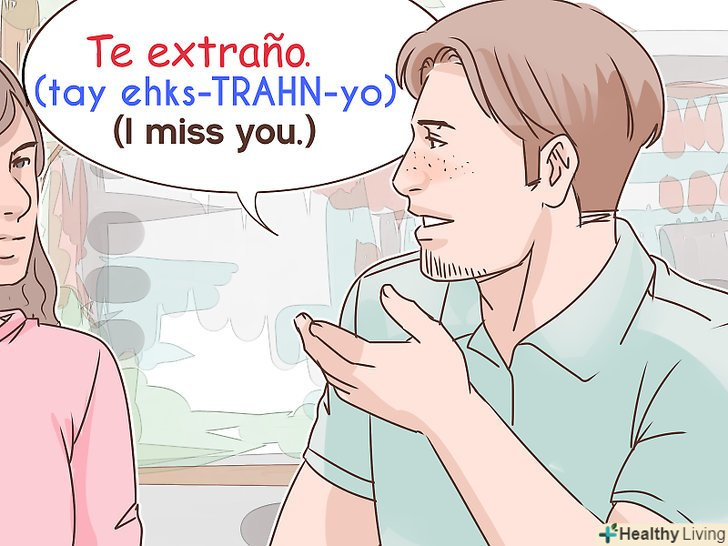 У Латинській Америці скористайтеся фразою "te extraño".цю фразу можна вважати більш прямим перекладом слів"я за тобою сумую". У наведеній формі дієслово extraño означає "Я сумую", а предметний займенникte замінює слова "за тобою". Дослівний переклад фрази звучить так:"за тобою сумую".[3]- Фраза вимовляється наступним чином"те екстраньо".