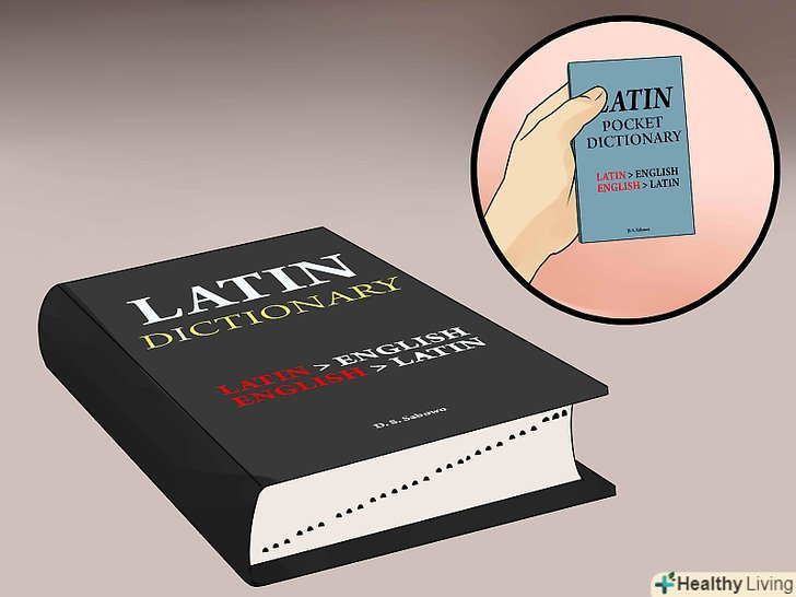 Купуйте латинський словник.наявність словника з латинськими словами і безліччю їх однокореневих подоб значно допоможе вам в поповненні свого лексикону.[17] в цілому, підійде будь-який хороший словник латині. Якщо ви не впевнені, які словники краще для вивчення мов, почитайте відгуки в інтернеті або запитайте поради тих, хто вже вивчав цю мову.- Деякі філологи рекомендують словники видавництва Langenscheidt, проте вибір більшою мірою залежить від ваших особистих уподобань.