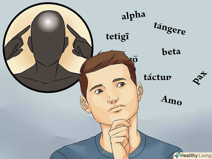 Використовуйте мнемоніку.Мнемоніка-це технологія навчання, яка допомагає вам запам'ятати щось складне шляхом асоціацій з іншим словом, пропозицією або зображенням.[21] акроніми (утворення слова шляхом складання перших букв кожного слова у фразі) і рими є двома найпоширенішими видами прийомів мнемоніки. Існує безліч методів мнемоніки для вивчення латині, які ви можете знайти в інтернеті або в книгах. Ви також можете винайти власні, щоб допомогти собі в навчанні.- В англійській мові популярною римою для запам'ятовування голосних в майбутньому часі є наступна фраза:"Conjugations one and two, in the future Bo Bi Bu; Conjugations four and three, in the future a then E". Ще одна Рима допомагає згадати іменники в жіночому роді 4 відміни:"Domus = house and manus = hand, feminine will always stand".[22]