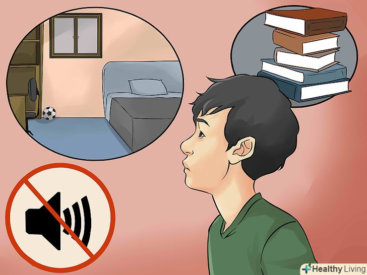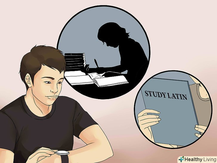 Визначте свої ідеальні умови навчання.деяким людям простіше концентруватися ночами, інші ж вважають за краще вчитися насамперед з ранку. Одним комфортно займатися у власній кімнаті, інші відправляються в бібліотеку, щоб менше відволікатися. Якщо ви вивчаєте Латинь, можливо, вам потрібні певні умови для спокійного і вдумливого навчання. Значить, вам потрібно придумати, як вам буде найкраще займатися.[25]- Спробуйте вчитися в спокійному місці, прибравши все, що може вас відвернути.