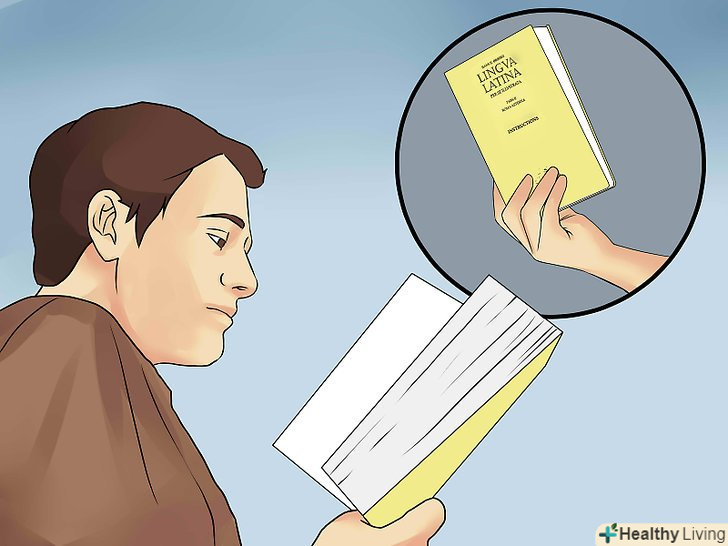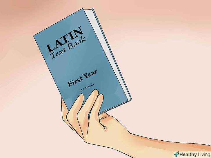 Купуйте підручник латині.якщо ви ходите на заняття з вивчення латині, можливо, у вас вже є певний підручник. Однак, якщо його у вас немає або якщо ви хочете доповнити те, що вивчили спочатку, ви можете придбати книгу "Wheelock's Latin". Вона названа на прізвище автора (Frederic M. Wheelock) і зазвичай розглядається як стандартний посібник для тих, хто вивчає латинську мову. Крок за кроком ви спочатку познайомитеся з граматикою і лексикою, а потім перейдете до збільшуються в міру складності пропозицій і коротких текстів.[16]