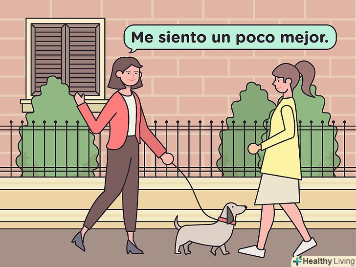 Поясніть, як ви себе почуваєте, за допомогою фразиme siento (Мі сьєн-то). це доречний спосіб відповісти, якщо хтось запитає вас ¿Cómo te sientes?. Як правило, якщо людина задає це питання, він знає, що останнім часом вам нездоровилося, і хоче знати, полегшало вам. Зазвичай це друг або близький знайомий.[10]- Якщо ви відчуваєте себе трохи краще, можна відповістиMe siento un poco mejor (ме сьен-то ун по-ко ме-хор).
