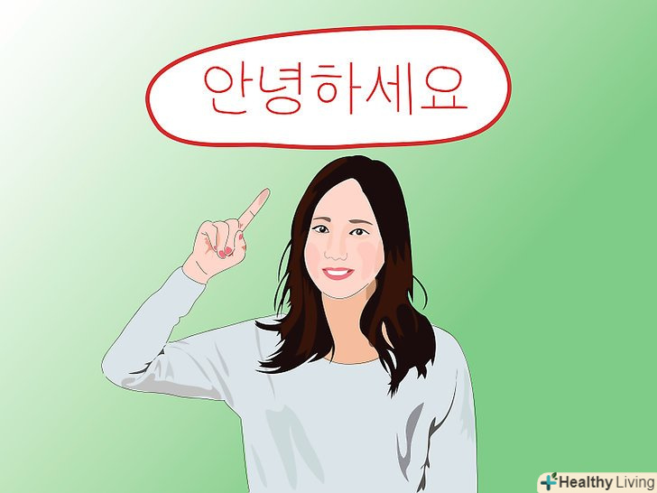 Почніть зі слів 안녕하세요.використовуйте цю фразу, коли звертаєтеся до незнайомої людини, своєму начальнику, вчителю, комусь старше вас або вищестоящому за посадою. Вимовляєте 안녕하세요 як "Ань-Йо-ха-се-Йо". Привітайтеся таким чином.- Ви також можете сказати 안녕, коли звертаєтеся до своїх друзів, рідних брата або сестри або когось молодше вас. Вимовляєте 안녕 як "ань-Йон'". Використовуйте це слово лише на початку привітання.