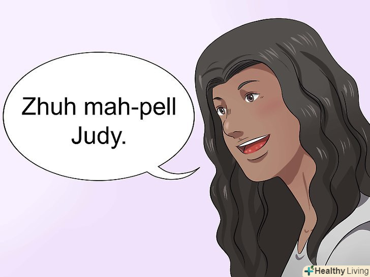 Скажіть своє ім'я.після привітання ви можете представитися. Знову ж таки, існує кілька різних способів це зробити (вони вказані нижче).[3] використовуйте неформальні варіанти тільки в колі друзів, сім'ї, дітей і тому подібних.- Je m'appelle __ _ _ _ _ (мене звуть ______):Жу-ма-пель (ваше ім'я). "J" вимовляється як "ж".