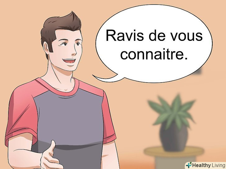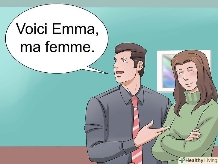 Уявіть інших людей, які знаходяться з вами.здатність уявити оточуючих майже так само важлива, як і здатність представитися самому, особливо якщо ви не сильні у французькій мові. Використовуйте фрази нижче, щоб познайомити людей, яких Ви знаєте з тими, кого не знаєте:[5]- Je vous présente ____ _ _ (я хочу представити вам______):Жу Ву пре-зон (ім'я).