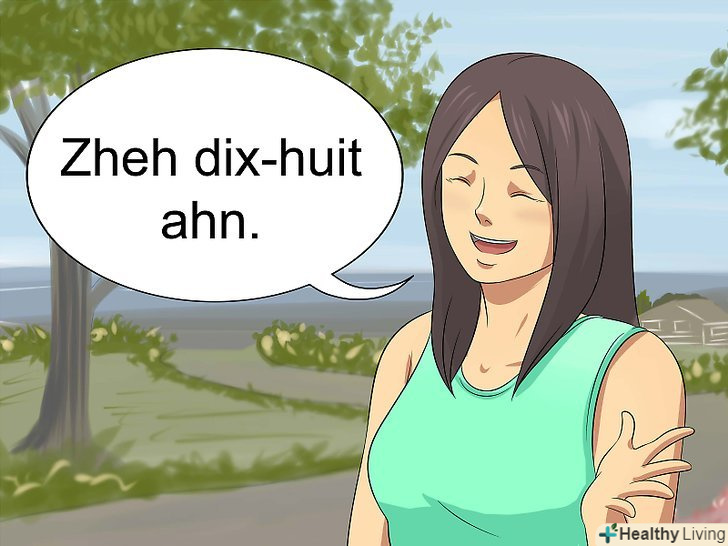 Якщо це доречно, скажіть про свій вік.ця тема не завжди спливає в розмові, однак якщо ви молоді і зустрічаєте людину старше, вам корисно буде знати, як сказати про це. Використовуйте прості фрази, зазначені нижче:- J'ai _ _ _ ans (мені ___ років): Же (число) ан. Остання буква N вимовляється ледь чутно.