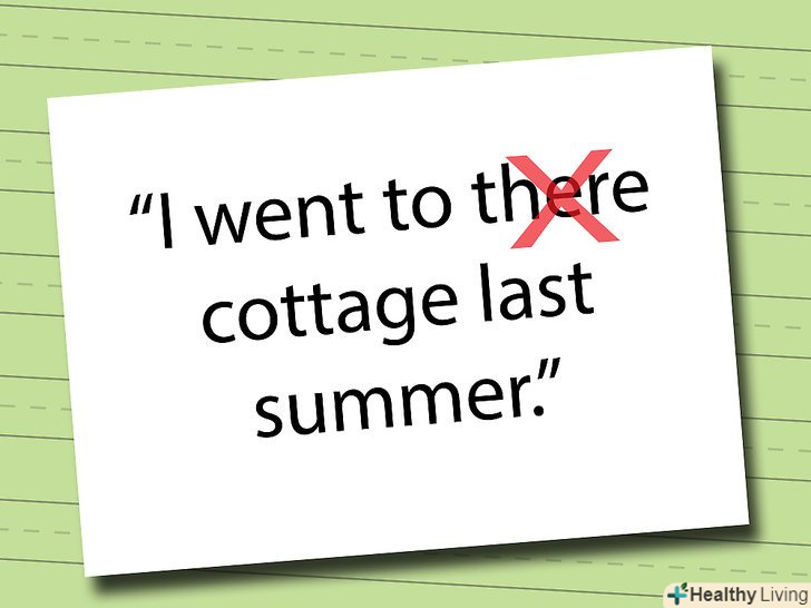 Визначайте неправильні приклади і вчіться на помилках. Окидывая критичним поглядом чужі роботи, особливо щоб допомогти відредагувати або відкоригувати текст, ви зможете краще відчувати вірне вживання і тренуватися.- Невірно:Their is no one here.