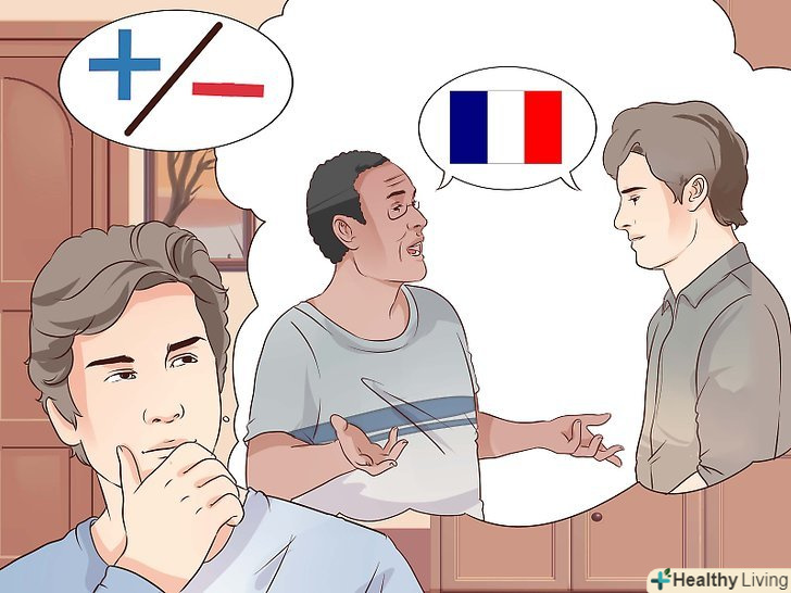 Порівняйте класичний і сучасний підхід. ви вчили другу мову за допомогою вправ, спеціальних карток і механічного повторення? Їхали на літо в іншу країну? Для всіх цих способів існує відповідна мовна теорія. Вивчіть базові принципи класичних підходів, щоб сформулювати власну стратегію навчання для дорослих.[7]- З часів Стародавньої Греції і до останнього століття при вивченні нових мов практично завжди використовувався так званий "аудіолінгвальний метод". Якщо на уроках французької мови в старших класах школи ви постійно мали справу з механічним запам'ятовуванням, частим повторенням, усними та письмовими роботами, робили упор на граматику і переклад, а вчитель постійно всіх виправляв, то ви вже знайомі з даним методом.