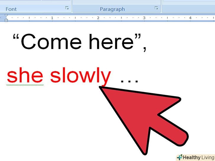 Замінюйте імена персонажів займенниками.імена власні ми пишемо з великої літери, займенники ж з маленькою. [9][10] щоб уникнути повторення імен персонажів, замінюйте їх відповідними займенниками.- Приклади займенників: я, мені, він, вона, ти, це, вони, кожен, мало хто, багато, деякі, все, і так далі.