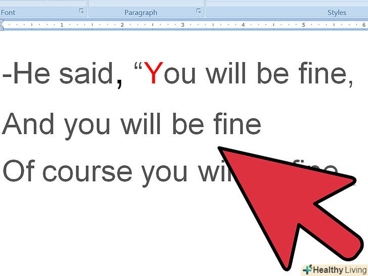 Розбийте довгу промову на абзаци. [7] якщо персонаж вимовляє довгу промову, розбийте її на абзаци.- Відкрийте лапки там, де почалася мова персонажа, і закрийте, коли вона закінчилася. Немає необхідності відокремлювати кожен абзац лапками.