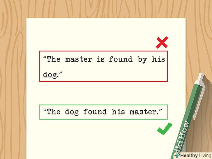 Використовуйте дійсну заставу.застосування активного застави і сильних дієслів допоможе зачепити і захопити читача. Уникайте дієслів в страждальному заставі і страждальних дієприкметників, так як вони можуть викликати абсолютно протилежне враження від тексту — слова будуть похмурими, сухими і абсолютно не запам'ятаються читачеві.[17][18]- Якщо ви хочете зацікавити читача-краще писати в теперішньому часі, ніж в минулому, це додасть жвавості тексту. Намагайтеся завжди використовувати даний час для опису дій в книзі.