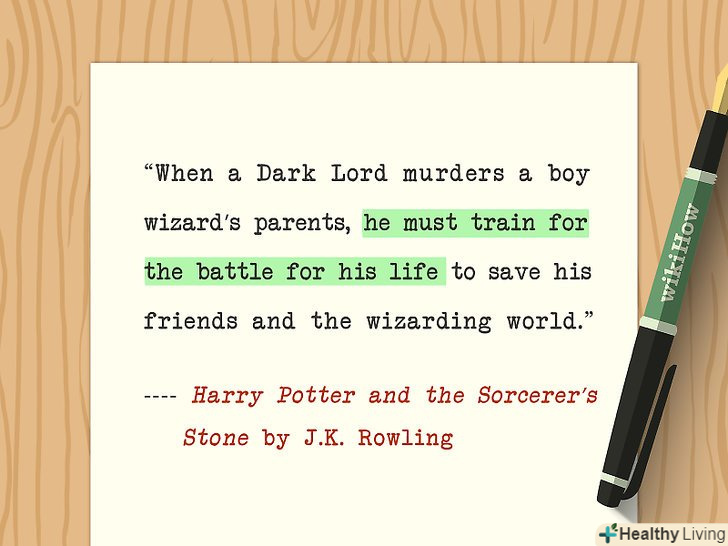 - Знову звернемося до прикладу Дж. К. Роулінг» Гаррі Поттер і філософський камінь": "Темний Лорд убив батьків хлопчика, і він повинен навчитися боротися за своє життя і врятувати своїх друзів і весь чарівний світ».
