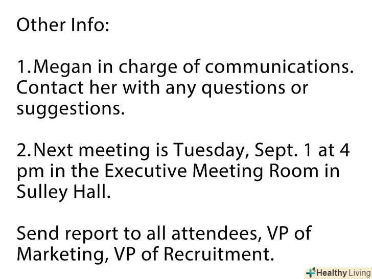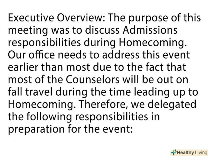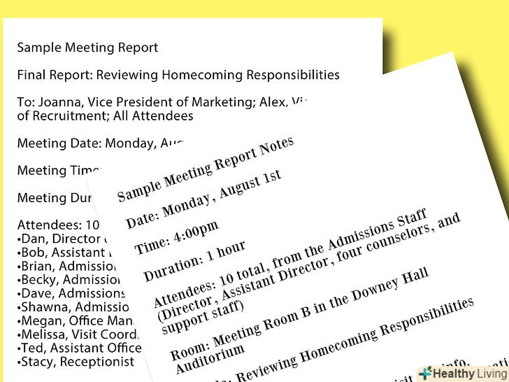 Можливо, на роботі вам доводиться вести протокол зборів або складати звіти про досягнуті домовленості. Хоча це і здається виснажливим, насправді, це просто, якщо ви знаєте, які теми зачіпати і скільки писати. У цій статті ви знайдете інформацію про те, як потрібно підводити підсумки, створювати таблиці і графіки і яких тонкощів не можна упускати. Уміння ефективно писати звіти зборів або досягнутих домовленостей допоможе вам залишатися організованим, а ваш начальник, напевно, це оцінить!
