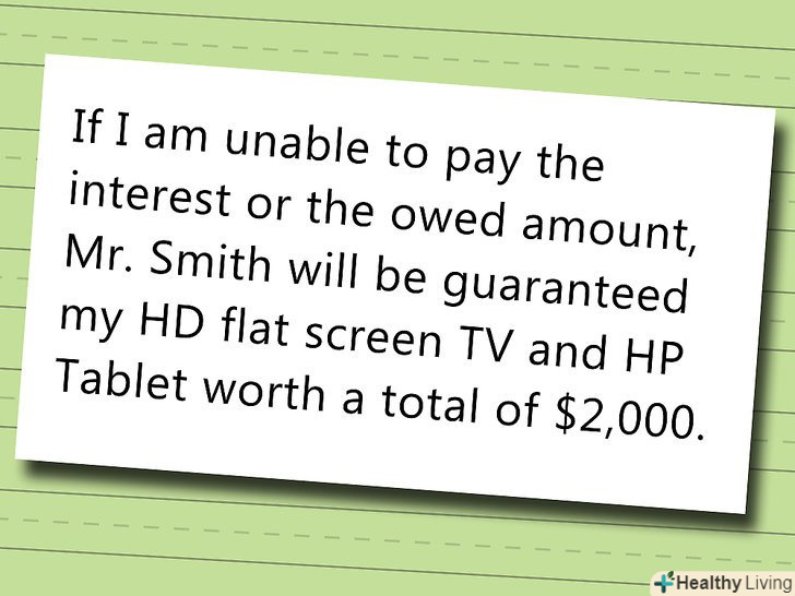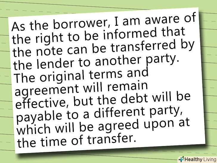 Повідомте позичальника про право передачі векселя.- За замовчуванням, платежі за забезпеченими боргами можуть призвести до конфіскації заставленого майна замість платежу.