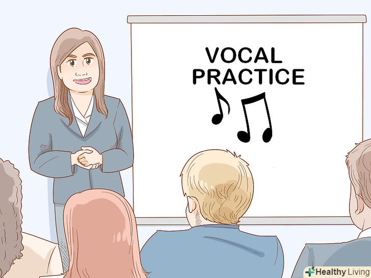 Відвідуйте уроки вокалу.якщо знайти людину, яка навчить вас користуватися голосом як інструментом, то ваш спів значно покращиться. Виберіть репетитора, який навчить вас не тільки правильно потрапляти в ноти, але і зможе розвинути загальну техніку виконання. Хороший педагог підкаже, як правильно стояти, дихати, рухатися і читати ноти під час виконання вокальних партій.[13]- Якщо ваші друзі відвідують уроки вокалу, зверніться до них за рекомендаціями. Також можна покластися на відгуки керівника хору, місцевих груп та ансамблів.