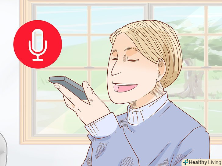Запишіть свій голос.через носових пазух ми сприймаємо власний голос не так, як він звучить для інших. Кращий спосіб дізнатися справжнє звучання свого голосу — прослухати себе в записі. Використовуйте диктофон або додаток в смартфоні і співайте одну мелодію хоча б 30 секунд.[5]- Необов'язково купувати найкраще обладнання, щоб оцінити свій голос, але важливо переконатися, що диктофон якісно записує звук. Якщо на записі в додатку для смартфона чужі голоси звучать неприродно, то програма напевно спотворить і ваш голос.
