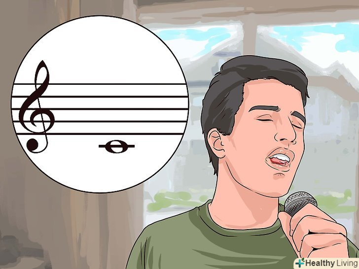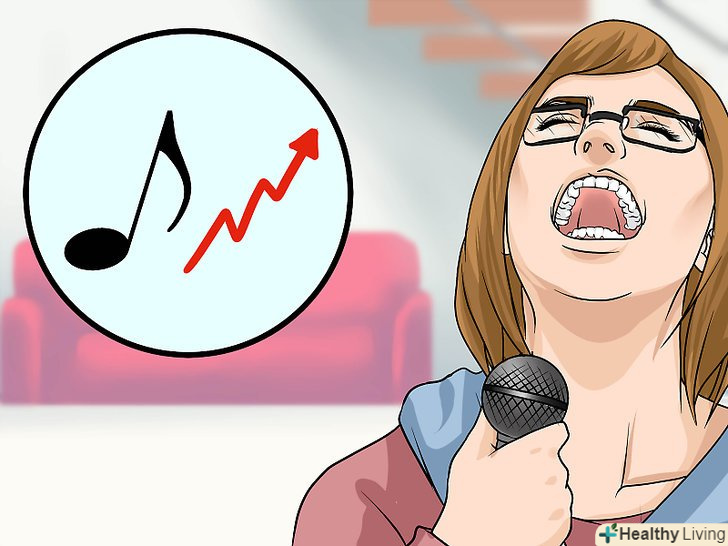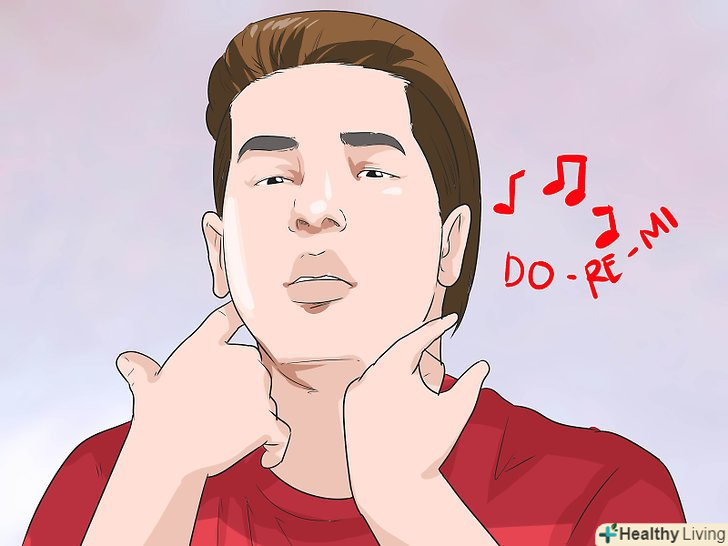 ЗаймайтесяРозминкою .спів-це вправа: ви повинні добре розігрітися, щоб уникнути травм. Співайте в своєму середньому діапазоні, потім в низькому, потім у високому і знову в середньому. Розслабтеся, потім знову повторіть. Якщо ви відчуваєте, що голос починає напружуватися, зупиніться і дайте собі час відпочити. Будьте поблажливі до свого голосу. Зрештою, це ваш квиток до прекрасного співу.[9]