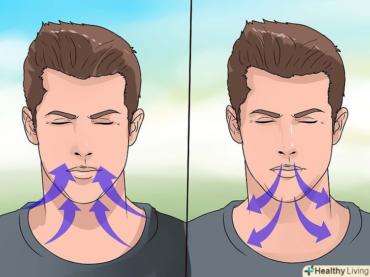 Навчіться швидко вдихати.щоб добре співати, вам потрібно навчитися вбирати багато повітря швидким вдихом. Використовуйте легкі і трохи уяви, і цей метод не викличе труднощів. Почніть вдихати, уявляючи, що повітря важке. Дозвольте йому глибоко проникнути у ваше тіло. Потім вдихайте швидше, все ще представляючи повітря важким, але нехай він занурюється в ваше тіло з більшою швидкістю. Продовжуйте робити це, поки не зможете вдихнути багато повітря в швидкому темпі.[6]- Якщо у вас багата фантазія, можете також уявляти, що ваші легені — це повітряні кулі, які наповнюються повітрям.