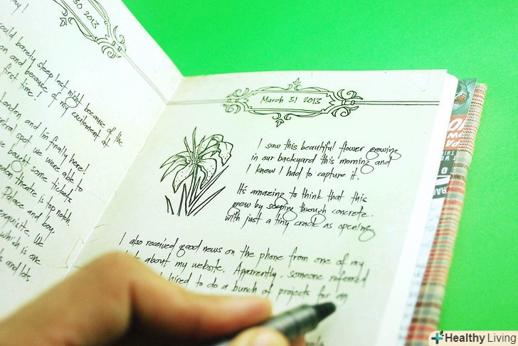 Робіть записи в щоденнику.багато людей роблять це не зовсім вірно. Цікаві записи роблять щоденник цікавим. Не просто перераховуйте події дня, що минає, а віддавайте емоції, пишіть, що ви відчуваєте в зв'язку з тією чи іншою подією. Може бути, ви почули щось дійсно цікаве, або щось, що торкнулося ваше серце. Якщо це так, напишіть про це.