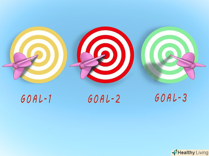 Встановіть кількаДосяжних цілей. Проблема, яку Ви ідентифікували, не буде з легкістю вирішена, для цього, ймовірно, буде потрібно багато роботи, можливо навіть роки роботи. Може бути навіть таке, що після декількох років роботи проблема так і не буде повністю вирішена. Проте, якщо ви встановите досяжні цілі і почнете працювати в їхньому напрямку крок за кроком, ви в кінцевому підсумку зможете озирнутися назад і побачити прогрес, якого ви домоглися.- Встановіть короткострокові цілі. Встановіть короткострокові цілі в такому плані, який буде мати для вас сенс і буде вас мотивувати. Чого ви хочете досягти за тиждень, За місяць або за рік?
