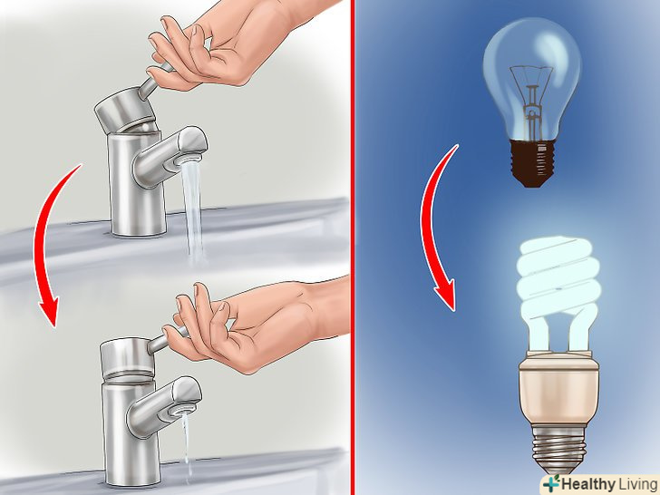 Економте енергіюІ воду.використання надмірної кількості електрики і води виснажує ресурси місцевості.[3] збереження енергії і води корисно як для планети в цілому, так і для місцевого середовища. Робіть все можливе, щоб зберігати енергію і воду, і це стане внеском в довгострокове здоров'я вашої місцевості.- Вимикайте світло, коли він вам не потрібен, використовуйте енергозберігаючі пристрої, рідше включайте Кондиціонер, знизьте температуру на водонагрівачі, виймайте вилку комп'ютера з розетки, коли вимикаєте його – за допомогою всіх цих дій ви зможете скоротити споживання енергії.