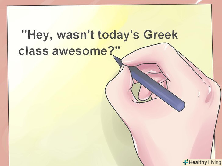 Не забудьте на початку тексту повідомити підказку (за бажанням) вашому другові з описом мови, який ви використовуєте.а ще краще, одержувач повинен заздалегідь знати мову, яку ви застосовуєте, щоб на початку повідомлення ви могли б дати деякі рекомендації щодо його використання.- Наприклад, ви можете почати свій лист так: "Гей, чи не був сьогодні урок грецької мови чудовим?". Це говорить про те, що ви замінили російські букви на грецькі.