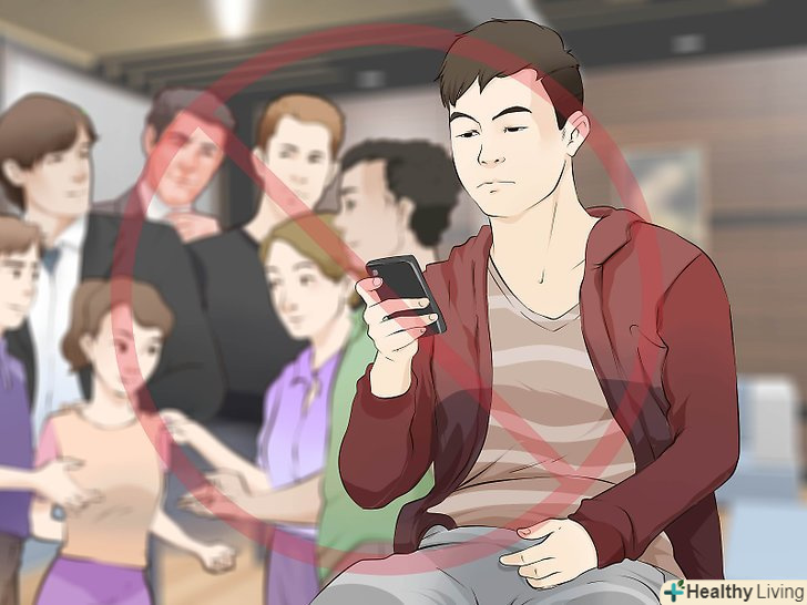Не ховайтеся за телефоном.завжди легко придумати собі заняття в телефоні, щоб уникнути незручності і приховати свою присутність. Примусьте себе заховати телефон. Спробуйте заговорити з певною кількістю людей (або окресліть певний час), щоб відволікатися від телефону.