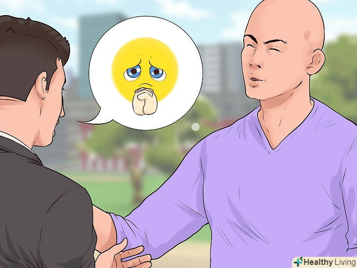 Спробуйте висміяти образу. [3] ще один хороший спосіб відреагувати на образу або запобігти чиїсь спроби зіграти на ваших нервах-відповісти коротким смішком і дотепно парирувати нападки. За допомогою гумору можна відобразити образу, переманити аудиторію на свою сторону і зняти напругу серед оточуючих.[4]- Наприклад, ваш співробітник ображає вас за те, як ви спілкуєтеся з клієнтами. Ви можете відповісти: "Ха! А я-то думав, у тебе дійсно є рішення проблеми".