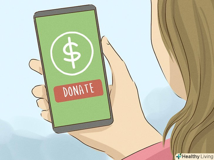 Якщо у вас є можливість, спробуйте фінансово спонсорувати організацію.ви можете просто пожертвувати гроші онлайн будь-якої організації, яка відноситься до вашої справи. Майте на увазі, що спочатку краще навести довідки, на що саме йдуть пожертвувані гроші. Можна знайти в Інтернеті різні організації та їх реквізити, а можна перевести пожертвування через соціальні мережі.[12]- Наприклад, якщо ви збираєте гроші для притулку для тварин, переконайтеся, що у організації є чіткий план, на що і скільки грошей вона збирається витратити. Люди не стануть просто так жертвувати свої заощадження, не знаючи, на що саме вони підуть.