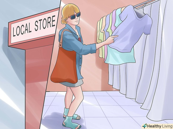 Купуйте місцеві товари.хоча це може здатися дивним кроком, що підпадає під категорію «на дорогах», однак ви будете шоковані, дізнавшись, що харчова промисловість звеличує великий внесок у викиди вихлопних газів. Якщо ви проживаєте в Каліфорнії, а купуєте чорницю зі штату Мен, ця чорниця повинна бути переправлена - або по землі, або по повітрю – і доведеться спалити величезну кількість бензину по дорозі. Замість цього можна постаратися купувати місцеві продукти, які були доставлені з дуже близького краю.[6]- А ще краще посадіть власний город. Немає нічого більш місцевого, ніж продукти, вирощені на своєму задньому дворику. Почніть з овочів і зелені, а потім спробуйте свої сили у вирощуванні фруктових дерев і ягідних кущів.
