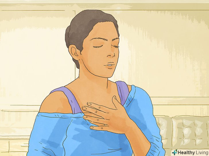 Виконайте техніку глибокого дихання.Закрийте очі, зробіть глибокий вдих животом, повільно порахуйте до трьох і випустіть з себе все повітря. Повторіть процес, поки не заспокоїтесь і не зможете зосередитися на матеріалі, а не на хвилюванні. Цю практику особливо корисно виконувати безпосередньо перед виступом.[11]