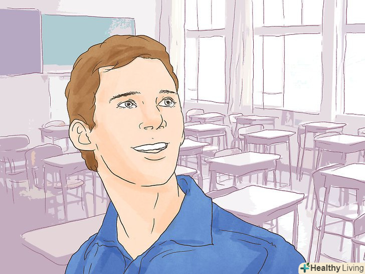 Розберіться, чому ви нервуєте. Ви боїтеся отримати погану оцінку? Вам здається, що ви зганьбитеся на очах у предмета обожнювання? Як тільки ви визначите причини, спробуйте розібратися з ними.[1]- Наприклад, якщо ви думаєте: «я виставлю себе дурнем перед друзями», — постарайтеся направити думки в більш позитивне русло, наприклад: «я так добре підготуюся, що блисну ерудицією і справлю враження на всіх своїх друзів».