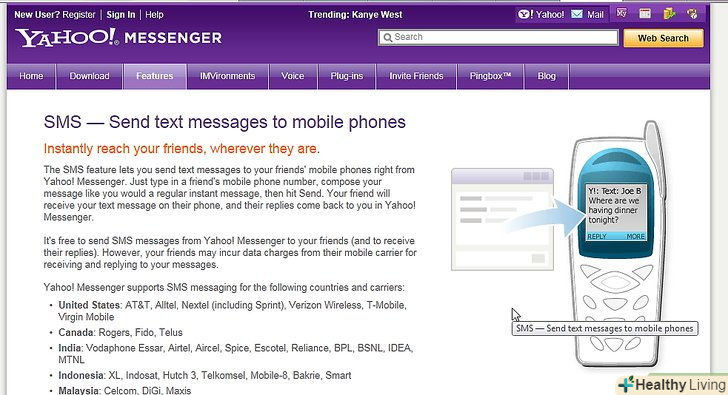 Деякі служби обміну миттєвими повідомленнями, якAIM і Yahoo! Messenger дозволяють відправляти миттєві повідомлення на мобільний телефон. у Сервісі AIM все, що вам необхідно зробити, так це додати +1, а потім ввести номер одержувача на адресу відправки. У Сервісі Yahoo! Messenger просто введіть номер телефону в поле адреси вгорі вікна і натисніть Enter.