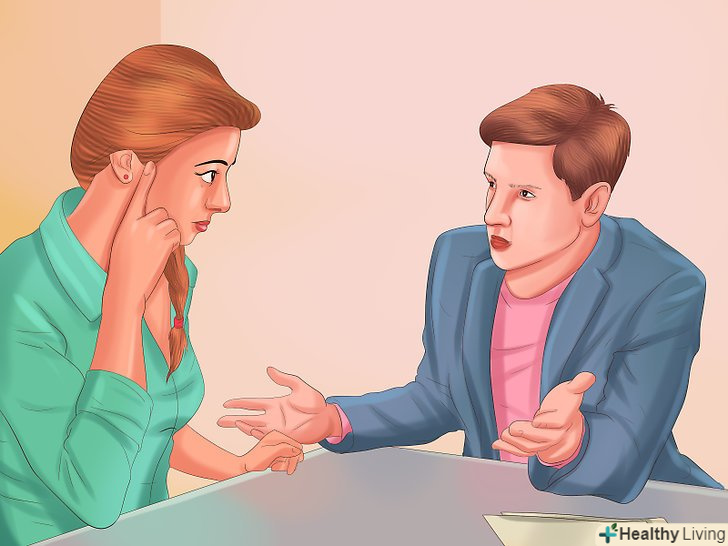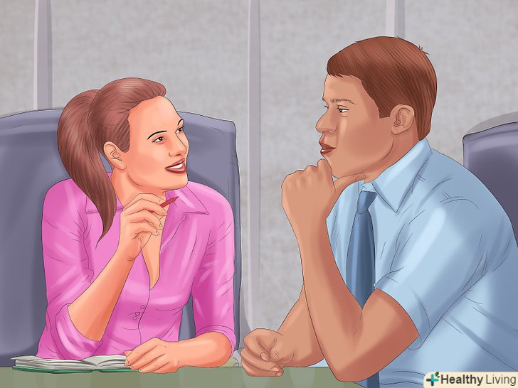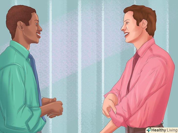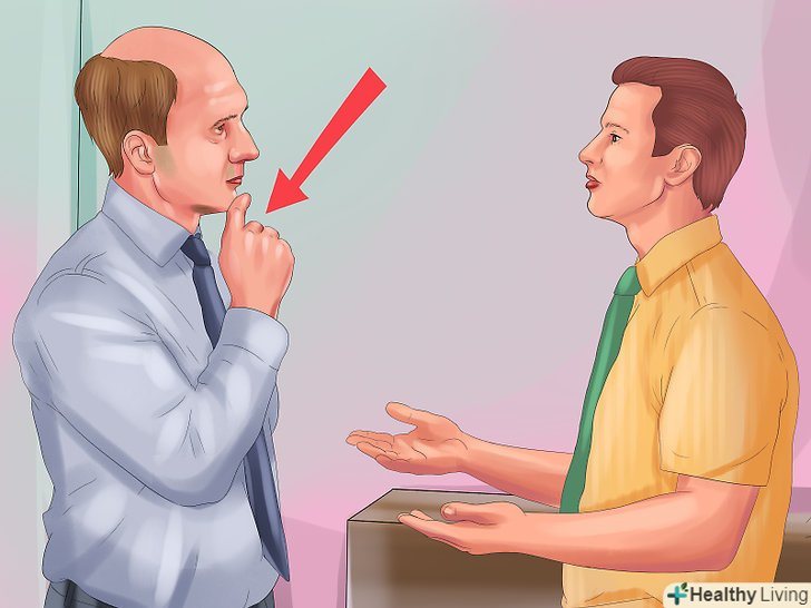 Зберігайте зоровий контакт.у західній культурі зоровий контакт – це невербальний спосіб висловити кому-небудь увагу і повагу. Це два фактори, які складають продуктивну комунікацію.[4] встановлюючи зоровий контакт, ви даєте зрозуміти співрозмовнику, що він може продовжувати говорити, і що ви його слухаєте.