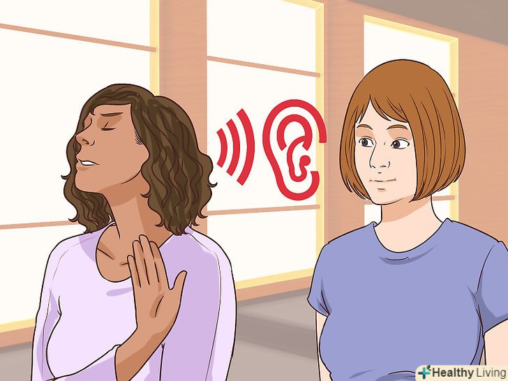 Звертайте увагу на тон голосу.ви можете вимовити одне і те ж слово, але при цьому змінити тон голосу. Слово буде мати різні значення. Тон голосу людини передає емоції, приховані за словами.[17]- Наприклад, фразу "Я в порядку" можна вимовити як дружнім тоном голосу, так і ворожим.