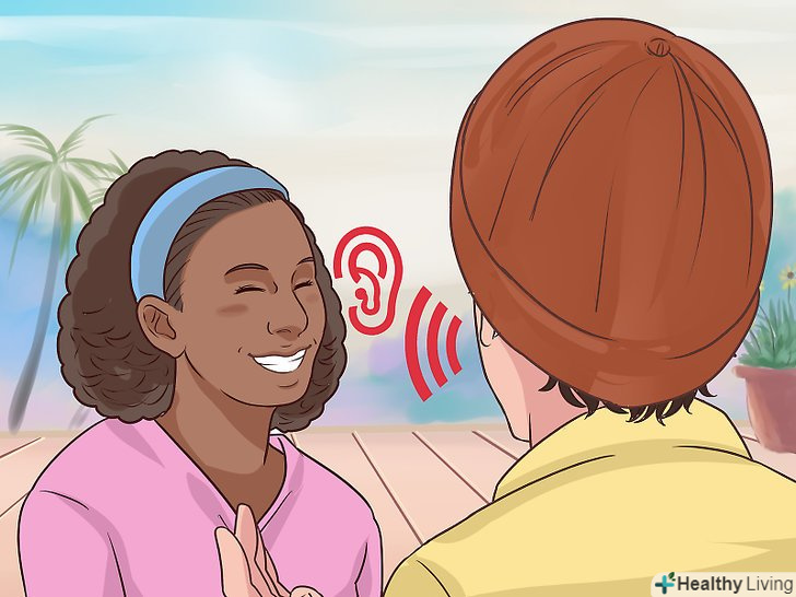 Будьте активним слухачем.активне слухання дає зрозуміти співрозмовнику, що ми його не тільки слухаємо, але і чуємо, а також розуміємо. Активне слухання дає можливість проявляти чуйність і співчуття до людини. Крім того, якщо ви є активним слухачем, то будете реагувати правильним чином на слова людини, з яким розмовляєте.[7]- Зосередьте всю свою увагу на співрозмовнику. Відкладіть свій телефон або інші відволікаючі Вас пристрої і уважно слухайте людину. Зберігайте зоровий контакт зі своїм співрозмовником.