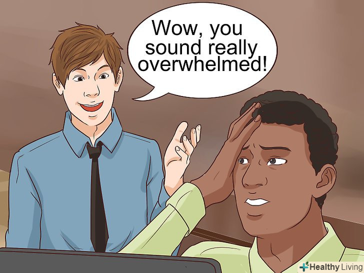 Перефразуйте слова свого співрозмовника.перефразування-це повторення слів співрозмовника своїми словами. Завдяки цьому ви зможете ще краще зрозуміти слова людини, з яким ви говорите.- Наприклад, якщо ваш колега каже: "Я ніколи не закінчу цей проект! Він нескінченний!"- ви можете сказати: "Ти кажеш так, ніби не зможеш впоратися з цим!»