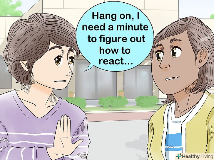 Зробіть перерву, щоб охолонути, якщо вам це потрібно.ще одне, що ви можете зробити, щоб перестати драматизувати ― навчитися розпізнавати свої імпульси. Якщо хто-небудь говорить вам щось, що змушує закипати вашу кров, розпізнавайте, в який момент ви починаєте злитися, і призупиніться на хвилинку. Це може здатися вам дивним, але це відмінний спосіб дати собі час оцінити ситуацію і не сказати зайвого, про що потім будете шкодувати. Вийдете на прогулянку. Попийте водички в сусідній кімнаті. Скажіть, що вам потрібен час, щоб подумати про подію. Кілька таких хвилин дадуть вам можливість вийти з ситуації раціональним і спокійним шляхом.- Будьте чесним з собою. Ви можете думати, що готові впоратися з ситуацією, але якщо у вас тремтять руки, ви притопують ногами або вас кидає в жар, значить, вам потрібно трохи більше часу.