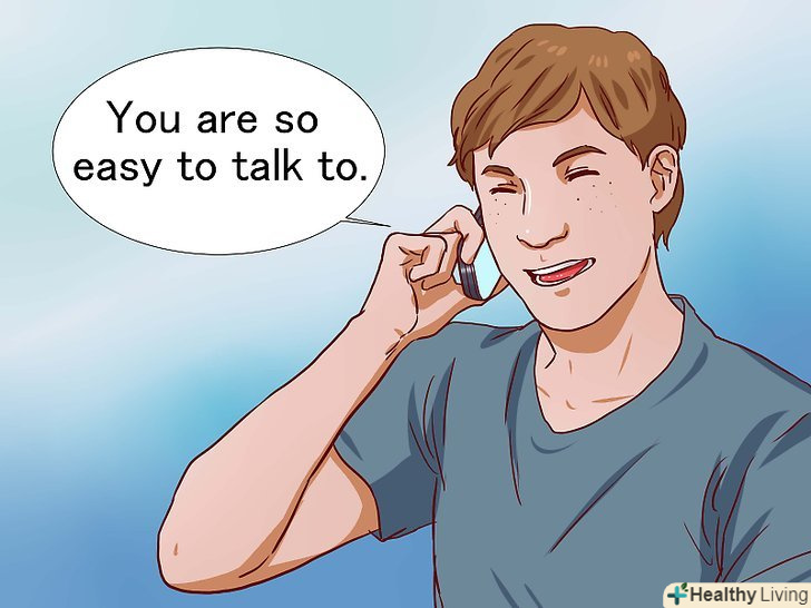 Змусьте її посміхнутися при прощанні.Скажіть щось приємне перед тим, як покласти трубку. Розкажіть жарт, назвіть її прізвиськом, яке їй подобається, або зробіть їй комплімент.- поки, красуня!