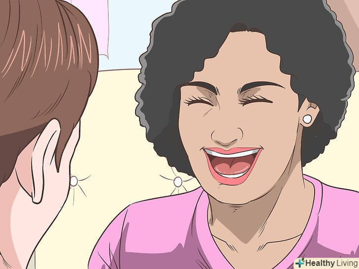 Навчіться імітувати зоровий контакт, якщо ваш стан здоров'я його ускладнює.людям з аутизмом, тривожними розладами та іншими особливостями або захворюваннями буває страшно або емоційно важко дивитися іншим в очі. Не жертвуйте приємною розмовою заради зорового контакту.- Дивіться людині не в очі, а поруч — на ніс, рот або підборіддя.
