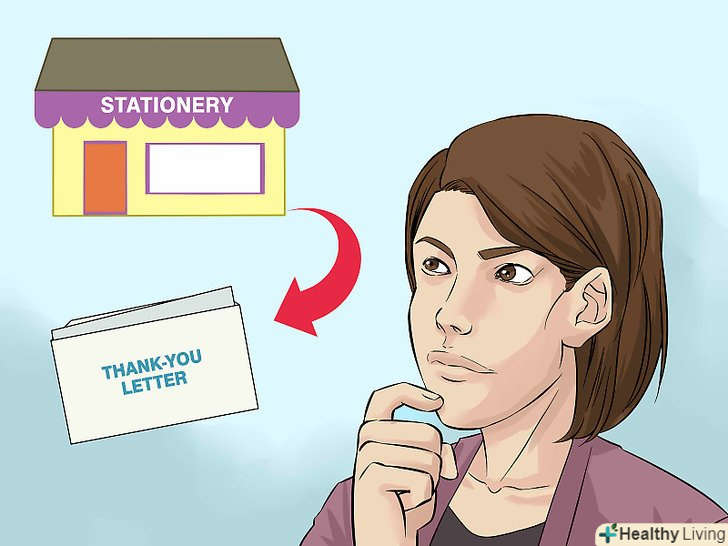 Використовуйте бланки для листів подяки.для ділового подячного листа підійдуть, як листівки, так і фірмові бланки. Якщо ви хочете писати всього кілька рядків, виберіть елегантну подячну листівку, щоб покупець відчув свою значимість. Або ж ви можете використовувати фірмові бланки з твердого паперу.- Не використовуйте звичайний папір для принтера для подячного листа.