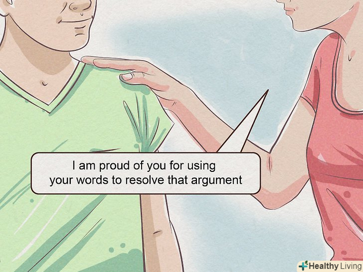 Говоріть конкретно.ні в якому разі не відпускайте розпливчастих компліментів. Інакше людина може подумати, що Ваша зворотний зв'язок не стосується особисто його. Робіть прямі заяви з приводу його поведінки.[2]- Скажіть синові:»Антон, я пишаюся тобою за те, що ти вирішив суперечку з сестрою словами".