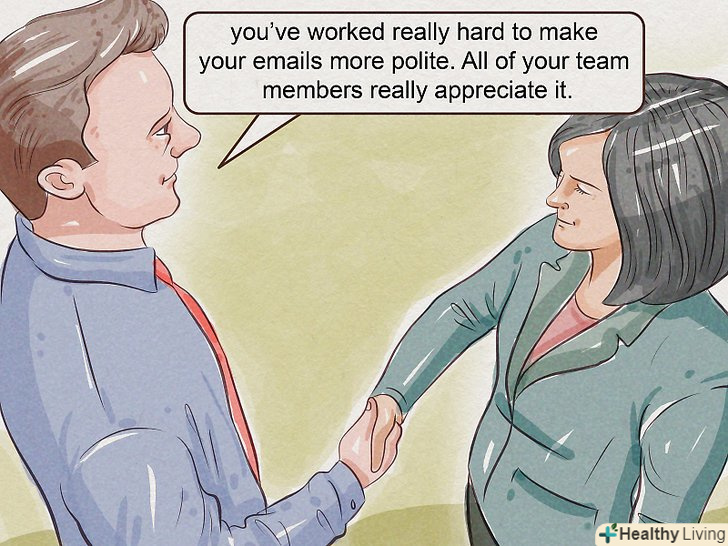 Будьте щирі.не хваліть людину тільки тому, що вам необхідно зробити це. Ви ризикуєте здатися удавальником і підірвати свій авторитет. Знайдіть щось, що ви дійсно вважаєте хорошою роботою з боку співрозмовника.[3]- Можна сказати: "Петро, ви дуже добре потрудилися, щоб писати більш ввічливі електронні листи. Всі члени вашої команди дійсно цінують це».